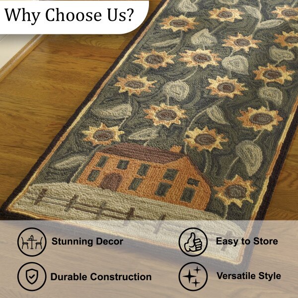 Pinit House and Sunflower Hooked Rug Runner SKU 450-37 UPC CODE: 762242318236DIMENSIONS: 24" x 72"BRAND: Park Designs $178.00 (0)No Reviews yet This item is IN Stock 1 Quantity -+ Add to Cart Ratings & ReviewsNo reviews availableBe the first to Write a Review